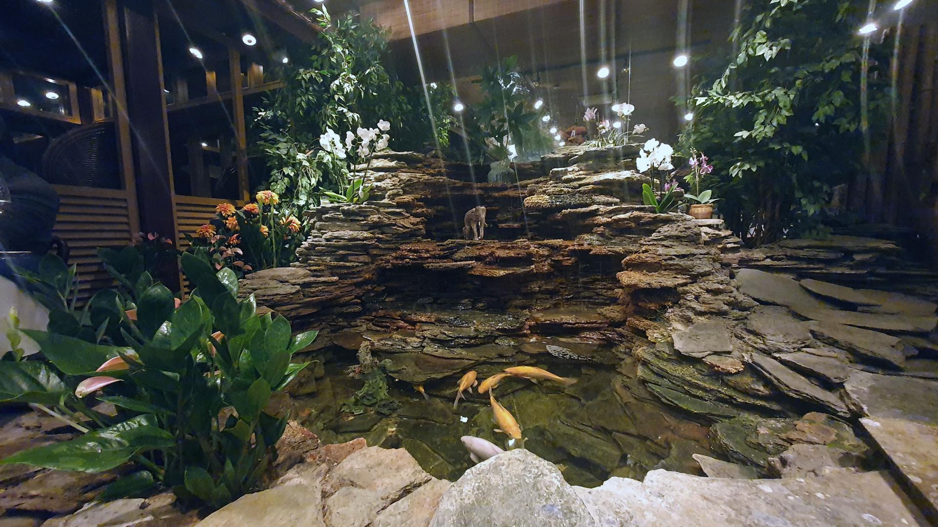 We arrived at the Copenhagen airport in the morning and took a cab to our hotel. Fortunately, our room was ready, and we didn't have to wait. We had lunch at the hotel bar and spent the afternoon relaxing and napping in our room. We had dinner at the hotel's Thai restaurant. We didn't have a reservation, so they set up an extra table by the koi pond. It turned out to be the best seats in the house.