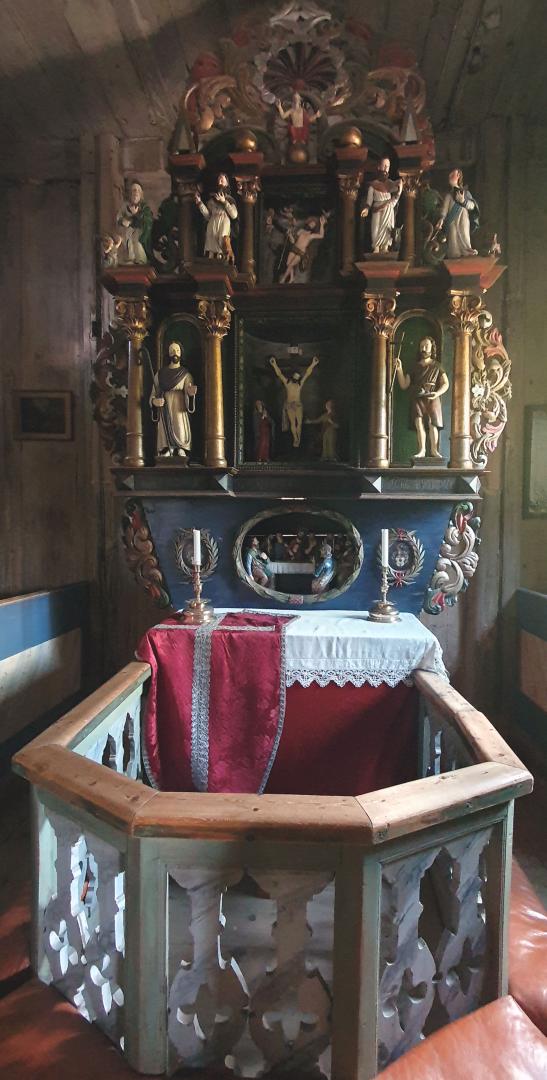 From there we visited Sundborn Church, which is near Lilla Hyttnäs. In 1905 Carl Larsson left his mark on the church when his eldest son, Ulf, died. He offered to redecorate the Church for no charge.