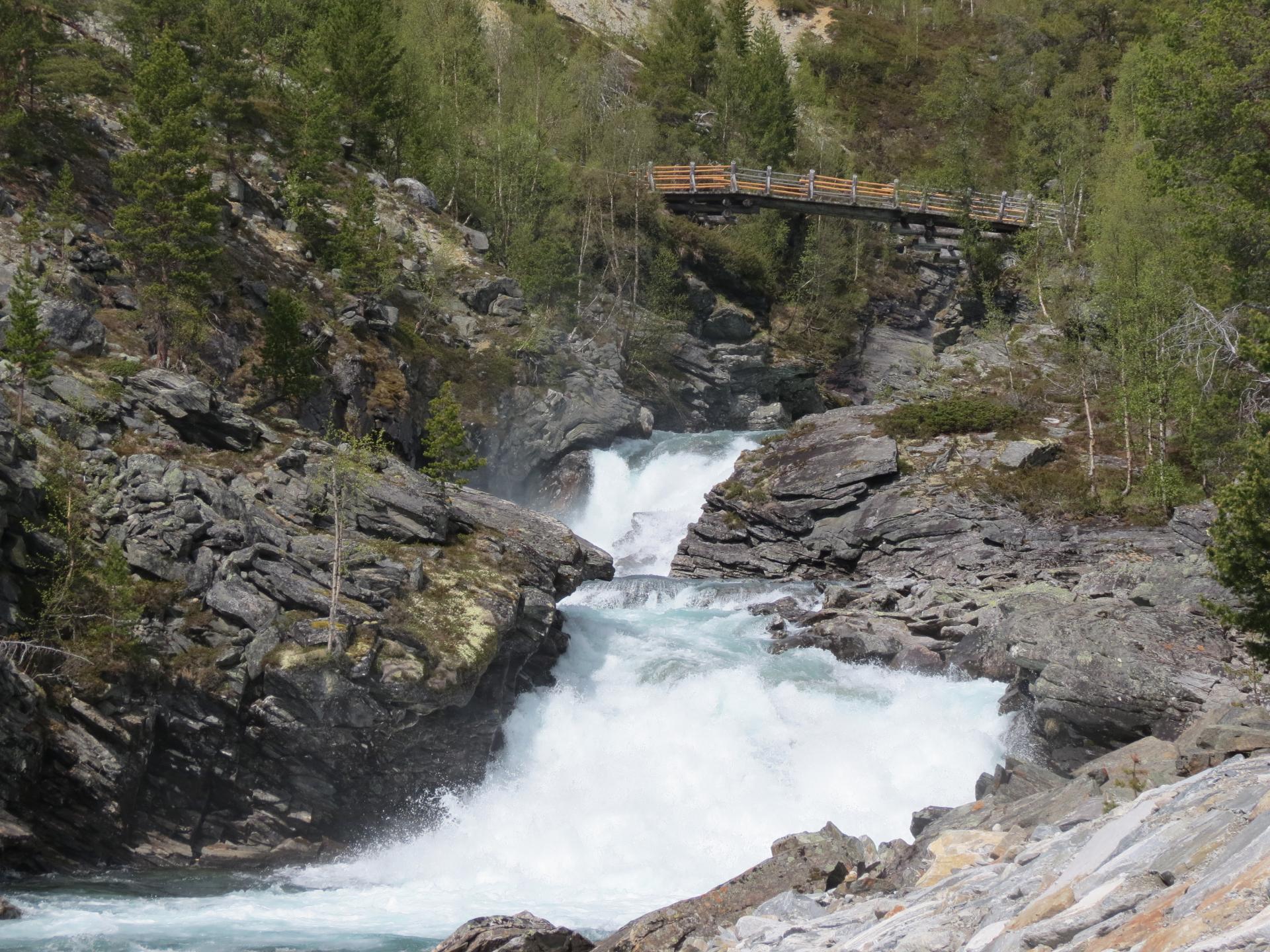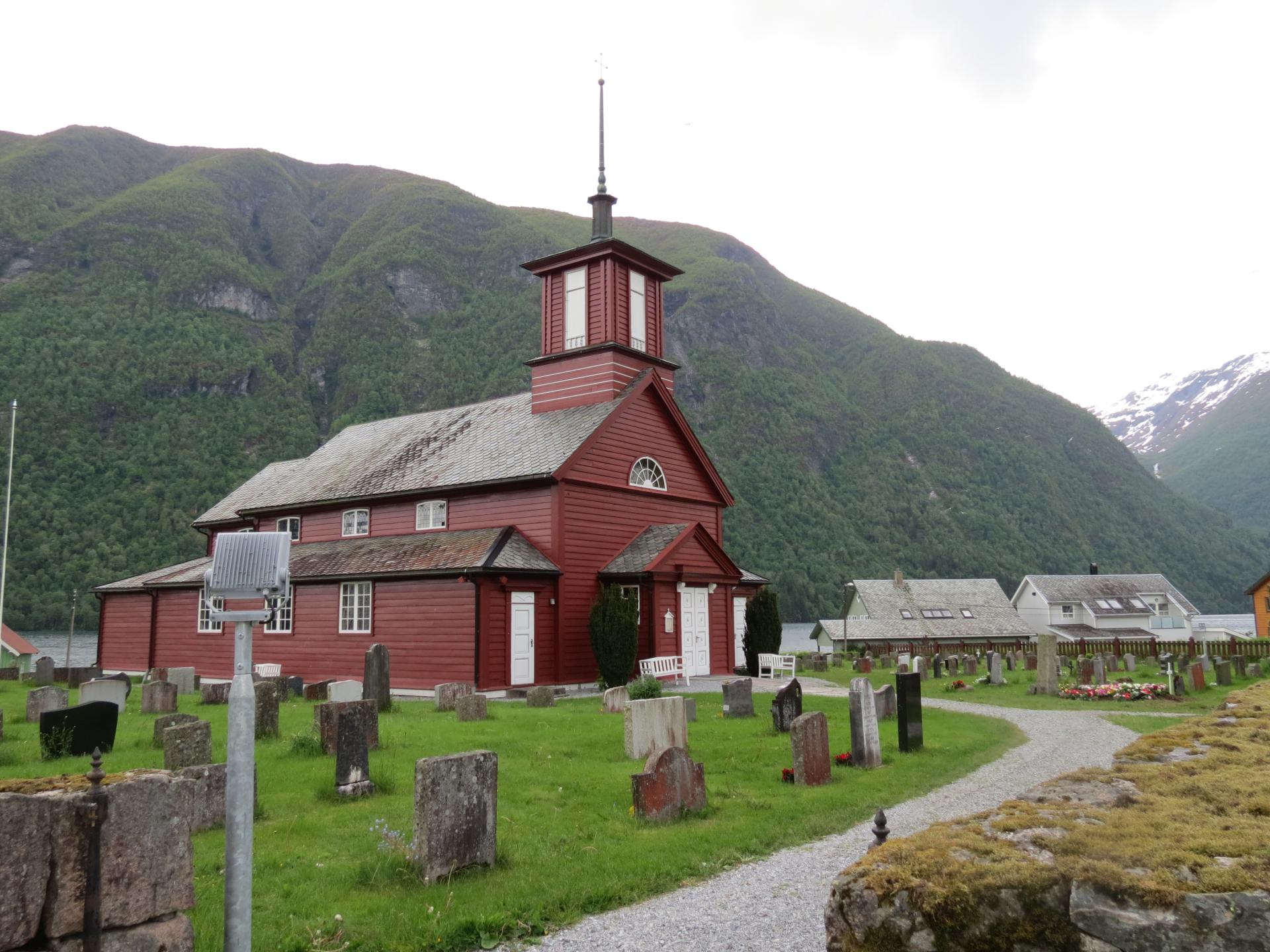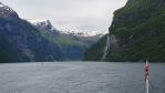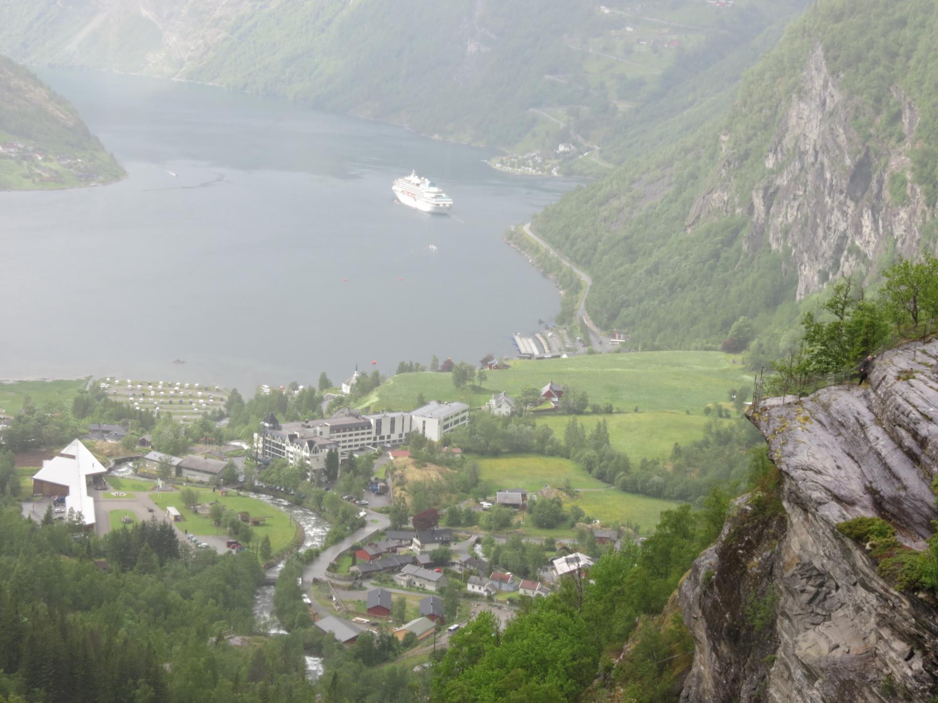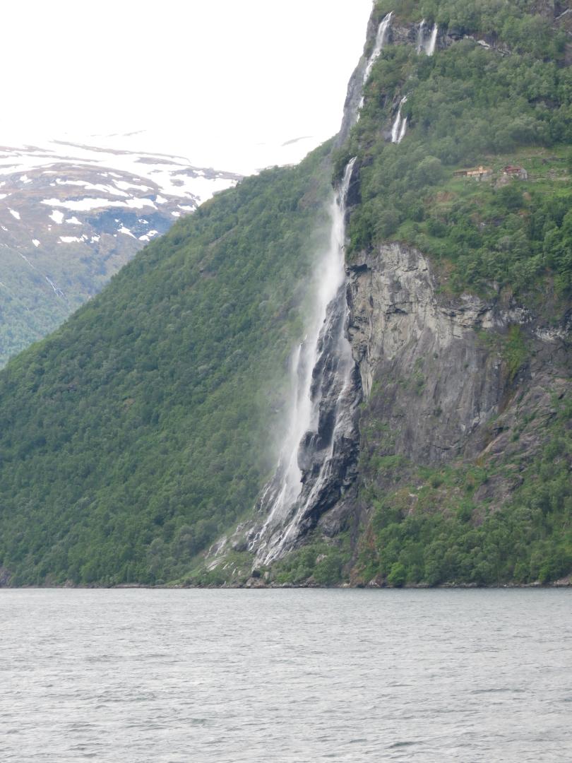Our coach tour continued northwest from Lillehammer through the countryside of Peer Gynt. Peer Gynt is a five-act play in verse written in 1867 by the Norwegian dramatist Henrik Ibsen. At Lom, we visited the Norwegian stave church that dates back to 1158. Then we traveled along winding roads that passed waterfalls, rivers, ice fields, lakes, and snow-capped peaks. We spent the next two nights in the scenic village of Geiranger, overlooking fjords and soaring mountains.
