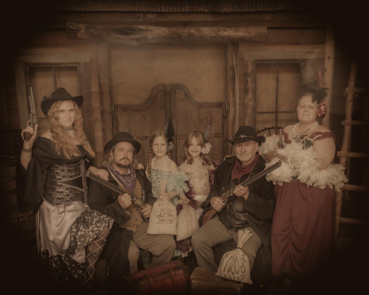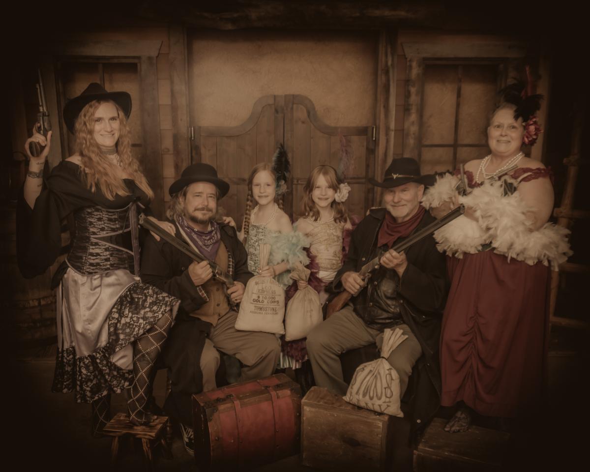 On 16 August 2025 during a RV trip to Pigeon Forge, Tennessee with our daughter and her family, we visited Wild Gals Old Time Photos for a bit of family fun.